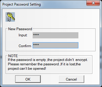 Be cautious not to forget the project password. Once it is set, it cannot be bypassed, and you will need to rewrite the entire project if you lose it.