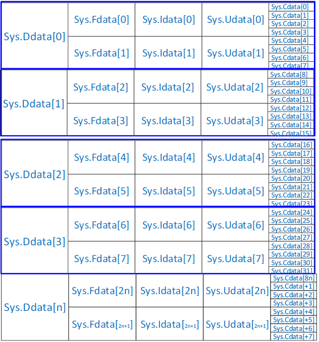 Here is a chart showing the “indexed” layout of Power PMAC User Shared memory, “pushm”: